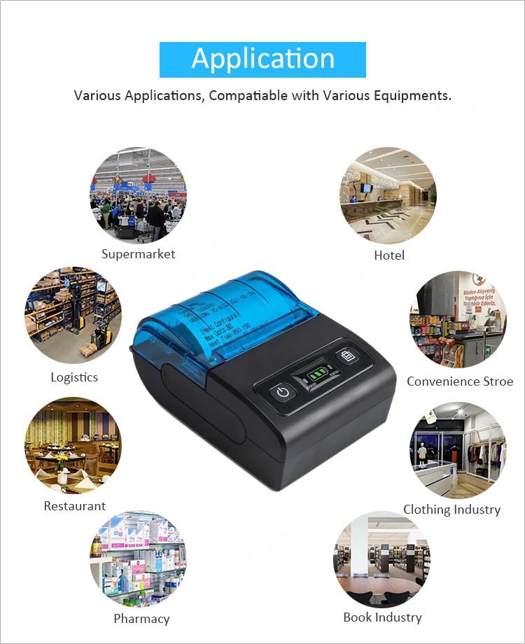 Mobiilne termoprinter võimaldab kaupmeestel nautida mobiililaadimise vabadust. See ühildub kõigi mobiiltelefonide ja erinevate pihuterminalidega. See võtab kasutusele termilise otseprintimise tehnoloogia ja ei vaja tindikassette, vähendades seeläbi kaupmeeste kõrgsagedusprintimise kulusid.